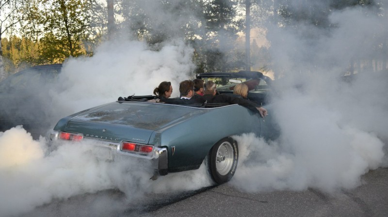 Kyllä se 100km/h nopeusero renkaan ja asfaltin välillä tuottaa jo ihan mukavasti savua!