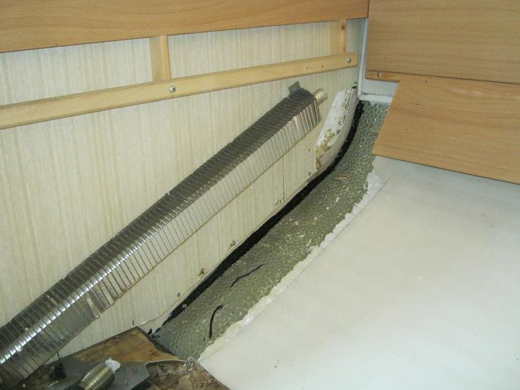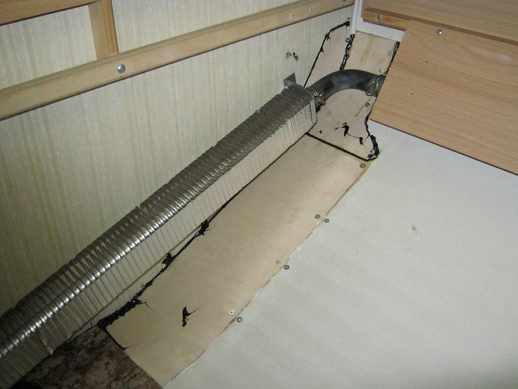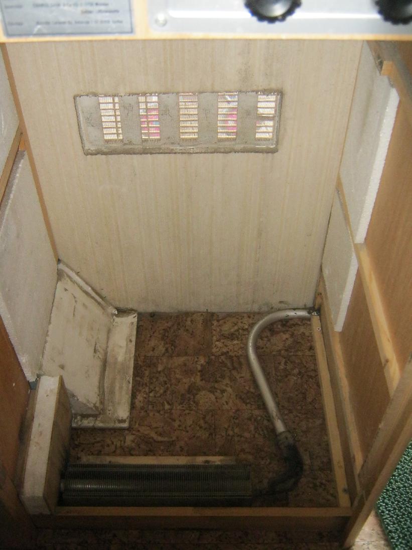 Jääkaappi on asennettu takaisin paikoilleen pakoputkella varustettuna. Yhdestä vetolaatikosta löytyi tuon kaapin mukana tullut putken pätkä.