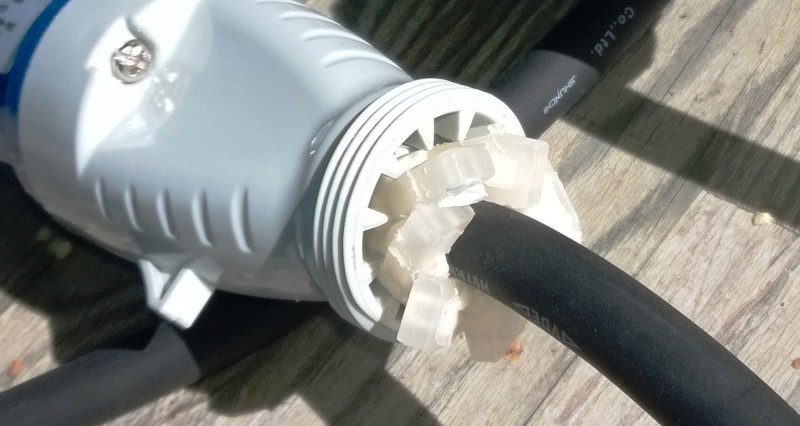 Minäkin ostin, kun 'halavalla' sai. Jos sitä joskus tarviais. Ne vedonpoistajat ei kyllä koskaan ole paikallaan ollutkaan, korkki kiinni vaan.....  Katsoin sisällekin.  Johtojen päät oli holkitettu ja ruuvit kunnolla kiinni. Kestää meikäläisen käytöllä lopun ikää.