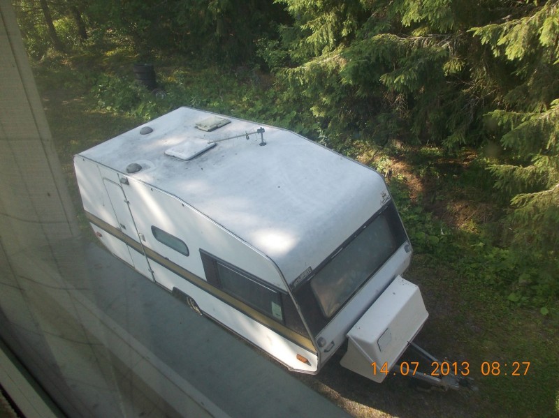 Toisessa vaunussa on kerronsänky takana ja siinäkin ikkuna. On muuten äärettömän kätevä kun veti yhdistelmää Pajerolla ja näki päiväsaikaankin jos joku ajoi ihan persuksissa kiinni. (Eli näki tavallaan vaunun läpi). Pikkuvaunussa on yksi ikkuna jostain voisin luopua (kerrosängyn vieressä, penkanpuolinen seinä) ja isommasta voisi ikkunan vaihtaa kattoluukkuun.