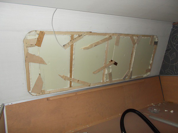 Yritin asentaa takaikkunaa. Ja kuinkas sitten kävikään. Pieleen meni. Ikkuna otti ja hajosi.