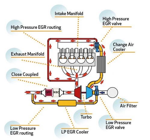 "LPEGR-teknologia (matalapaineinen pakokaasun takaisinkierrätys) sieppaa hiukkassuodattimest a tulevat pakokaasut ja kuljettaa ne palotilaan matalapainekierron kautta. Järjestelmän etuja ovat pienemmät NOx-päästöt alhaisemman palamislämpötilan ansiosta sekä polttoaineen säästyminen paremman  turbon hyötysuhteen avulla. LPEGR-teknologia ei vaadi AdBlue®-nestesäiliötä eikä nesteen lisäämistä."