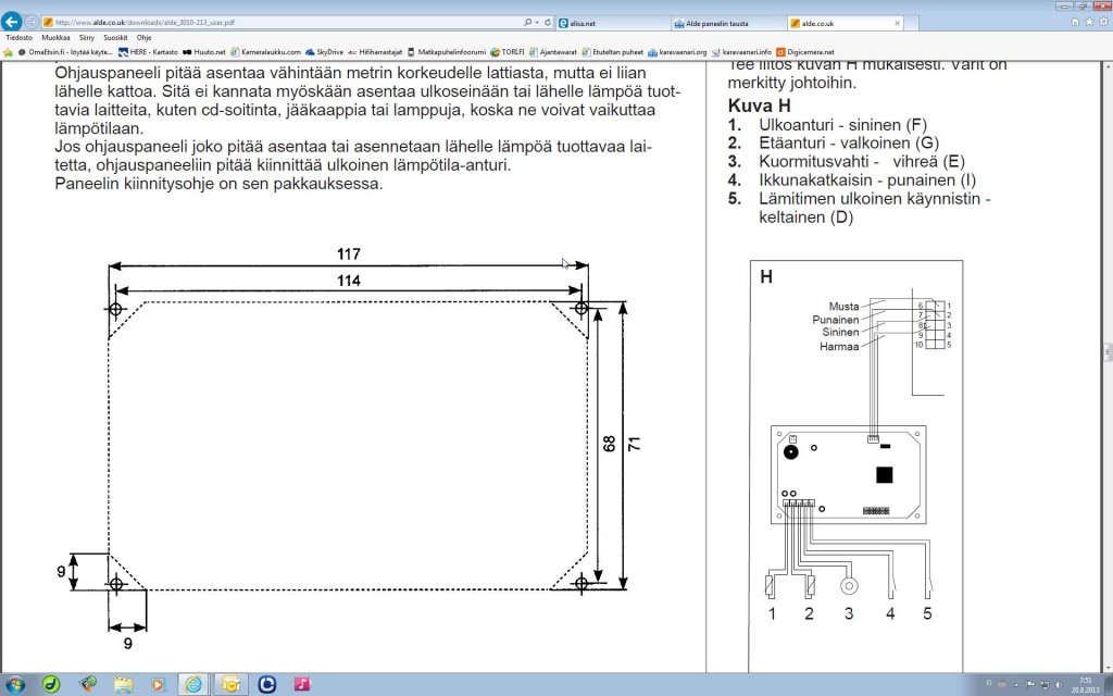 En vain muista miten ne piuhat siellä oli , vaikka parivuottasitten caravancontrolin sinne kytkin.