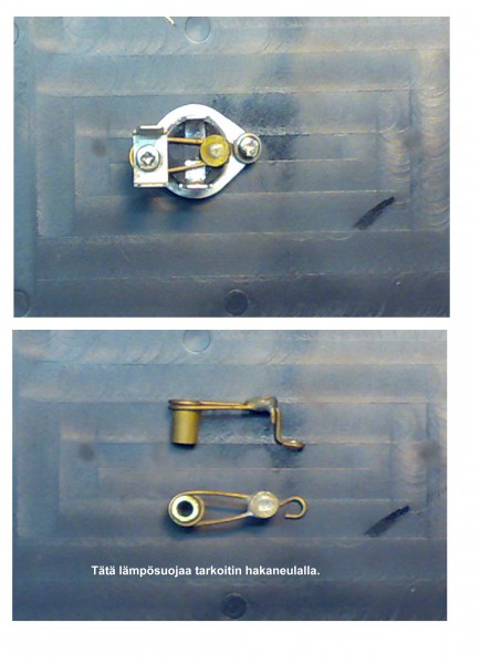 Tuollainen se on kun on kunnossa ja jos on lauennut niin tina on sulanut jolloin jousi oikosulkee vesitermostaatin navan maihin ja sulake laukeaa.