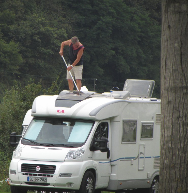 Saksalaiset kovasti näyttävät suuttaavansa noita autojaan stellplazeilla ja leirintäalueilla. Tässä kerran kauempaa nappasin kuvankin, oikein katolle piti Herralla nousta.