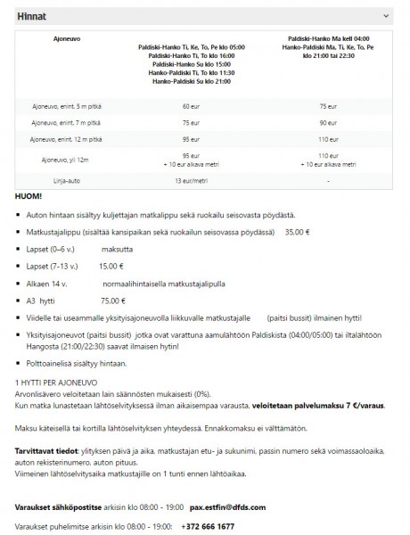 Eri hinnat ainakin aikaisemmin liittyivät lähtöaikaan ja oliko se niin, että yölähdöllä oli aina hytti pakollinen, josta pieni hinnan lisä.