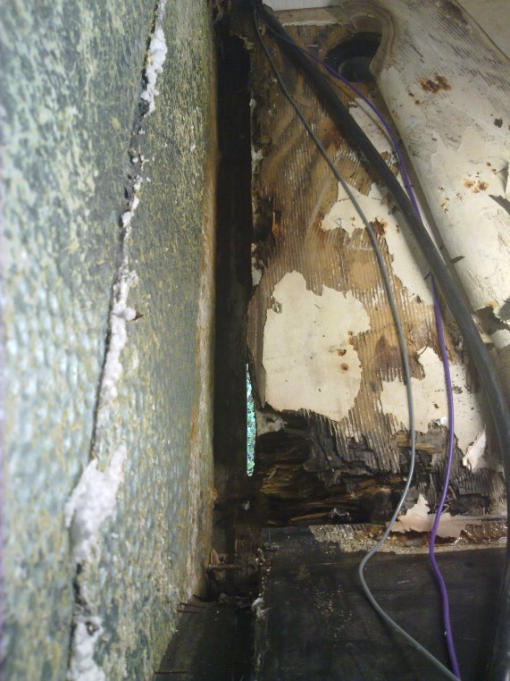 Syyllinenkin tähän löytyikin melkoisen läheltä. Lokasuojassa on halkeamia josta valo paistaa suoraan kabiiniin ja sitä kauttihan pääsee vesikin sisälle.