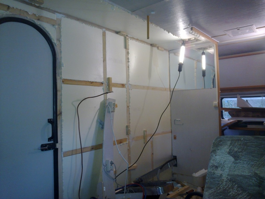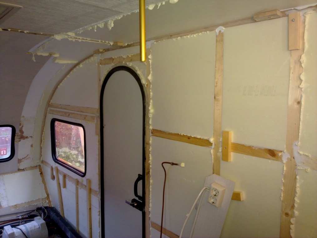 Kiitoksia palautteestanne  :). Eihän tämä avaruustekniikka ole. Uskaltaa ruveta tekemään ja touhuamaan. Kyselemällä ja netistä etsimällä löytää tietoa. Purkamisessa on omat niksinsä, eli ei kannata heti pistää matalaksi kaikkea, se saattaapi pehmennyt vaunu luhistua kasaan. Itse olen joutunut purkuvaiheessa miettimään mitenkä tämä on alkujaan rakennettu ja sitten siitä soveltamaan, koska puu-osat ovat olleet ihan möherönä. Pahimpana on ollut tuo etu-poski, koska sen runko oli hävinny lähes olemattomiin. Puretuista jäännöksistä todettiin, että mitenkä se oli alkujaan rakennettu. Samaa luovuutta joutui käyttämään lokasuojan jälkeen mentäessä taaksepäin, eli se alaosa joka sijaitsee Kafissa sen vihreän kylkipellin takana. Mutta kyllä se siitä pikkuhiljaan etenee. Talvi se vaan uhkaavasti lähestyy keskeyttämään rojektiamme tänne Pohjois-pohjanmaallekkin, jospa saataisiin nuo eristeliimaukset tehtyä sitä ennen  ;D.