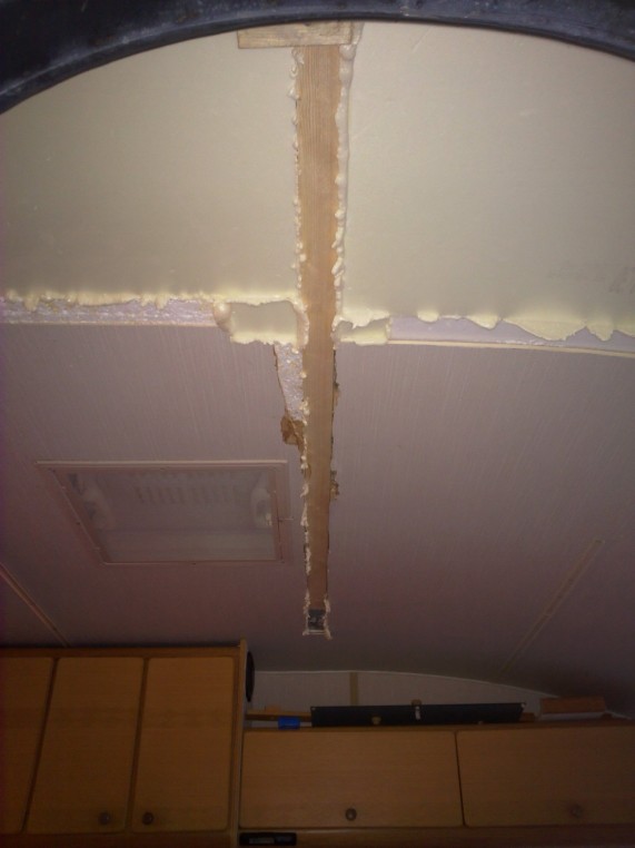 Ainut poikittais"Niska" katossa vaunun etuosassa oviaukon kohdalla. Ei ihan tarvinnut mennä toiselle puolelle, että löytyi tervettä ja siihen asianmukainen liitos.