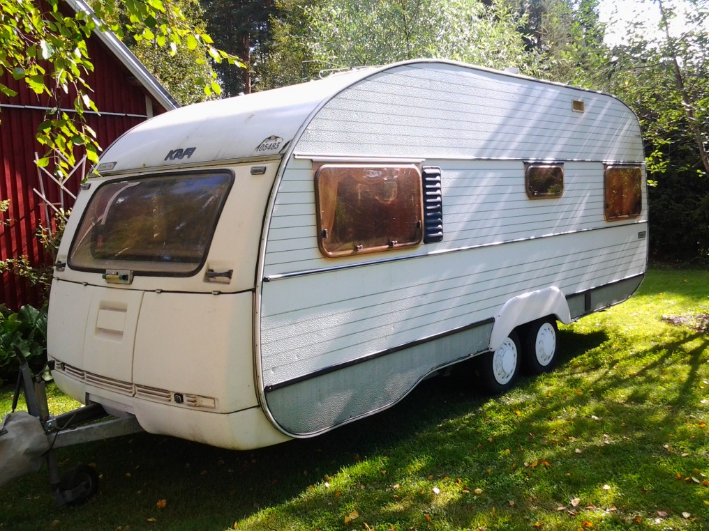 Aloitampa Kafi-rojektin tänne. Palautetta ja neuvojakin toki saa antaa ja pitääkin, mielellään asiallista sellaista  Thumb . Keväällä iski sitten vaunu-kuume! Ja kun talous ei antanut periksi jotta olisi ostanut uuden tai saatikka ehjän, niin tyydyttiin sitten tällaiseen projektiin joka löytyikin sitten loppukesästä tuosta naapuripitäjästä. Siitähän pidettiin kiinni, että Kafi se olla pitää ;D.