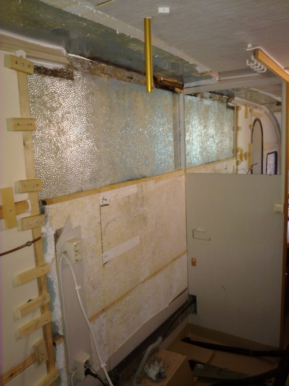 . Ei vieläkään tullut vastaan ehjää katonrunkopuuta. Eli jatketaan purkua etiä päiten, mutta sitä ennen korjataan purettua.![]() ![]() ![]() Ja niin kivasti vesihelmet roikkuivat katossa kun eriste poistettiin . Nyt saa katto saa jäädä kuivumaan tuolta osin, lämmöthän meillä on ollut päällä jo tovin aikaa sähköllä ja hyvin tarkenee sitten kun oikeen halutaan tehostaa lämmitystä niin laitamma kaasun tulille .Taas on purkuryhmä käynyt paikalla ja nyt sitten sai "saniteettitilat" puolestaan väistyä remontin ajaksi Mahtavuutta että otat noin paljon kuvia projektistasi. Ei muuta ku tsemppiä! Hienon vaunun saat vielä jonain päivänä koukkuun nostaa. Ja tietysti orgin tarrat keulaan, jotta tietää tulla morjestaan ku samoille huudeille eksytään. Vaan arvaappa menikö mulla hetki tajuta että miten tos viimeises kuvas on ovi perässäkin?!?!?! Heh, se olikin "peilikuva" ![]() Mahtavuutta että otat noin paljon kuvia projektistasi. Ei muuta ku tsemppiä! Hienon vaunun saat vielä jonain päivänä koukkuun nostaa. Ja tietysti orgin tarrat keulaan, jotta tietää tulla morjestaan ku samoille huudeille eksytään. Vaan arvaappa menikö mulla hetki tajuta että miten tos viimeises kuvas on ovi perässäkin?!?!?! Heh, se olikin "peilikuva" Kiitokset palautteestasi . Jospa joku saisi vinkkejä niistä ja kuvathan on niin mukavia katsella, laittelen lisää matkan varrelta . Osasyynä on myös se kun on laittanut vaununsa näinkin päreiksi, niin olisi jokin mahdollisuus saada se myös kasattua samaan kuosiin kuin mitä se oli ennen purkua Ja tulee parempi,kun tehtaalta lähtiessä