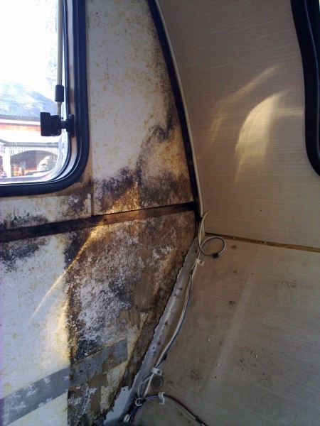 Kävin konttamassa oman spriten rakennetta niin seinän alarima on kiinni runkopalkkeihin kiinitettyjen lattian reunan alla olevien rimojen kyljessä.Lattia on ilmeisesti tuossa keksinnössä vain yksinkertainen vaneri ja seinän alarima tulee sen alapuolelle runkorimaan kiinni  Pohja näyttää olevan aivan kova ja kuiva mutta keittiökalusteiden kohdalta seinä aivan pehmeä