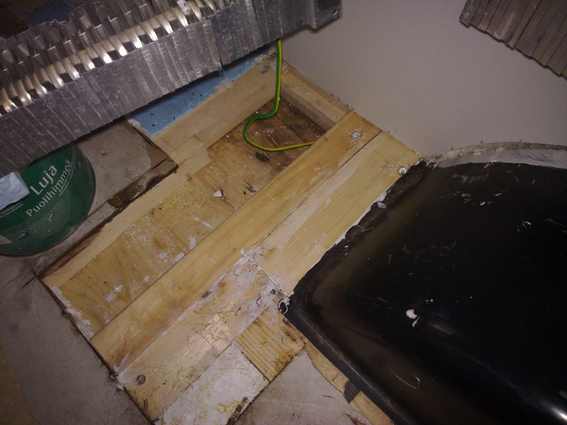 Uutta puuta, liimaa ja jokunen ruuvi. Uutta runkoa lattiaan.: