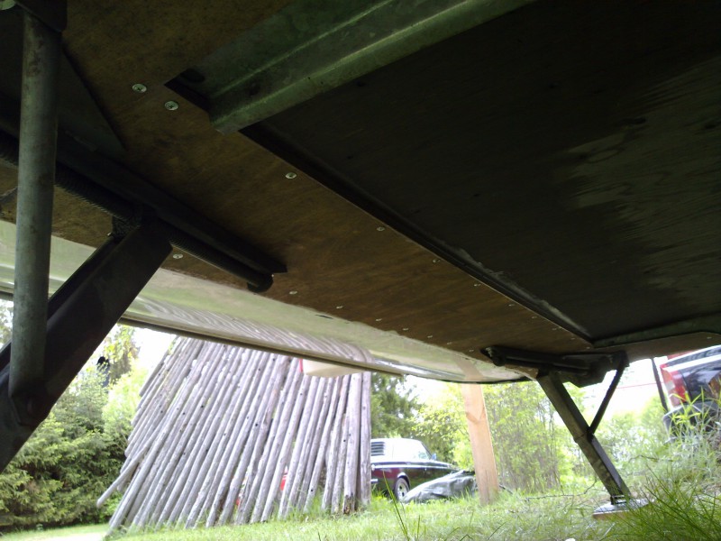 Takapään lattia sai lisää vaneria tukijalkojen alle, asiasta mainitsinkin joskus aikaisemmissa kirjoituksissani . Jäykisteeksi laitettiin 12mm vaneri suikaleet kera puuliiman, butyylin sekä ruuvien. Pinta kyllästettiin Pellava puuöljyllä, jolla loppulattiakin tullaan käsittelemään jatkossa..