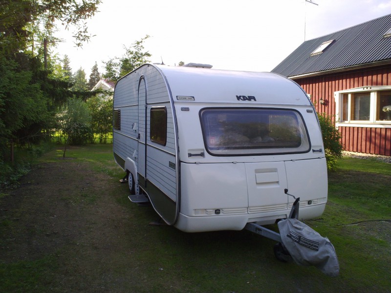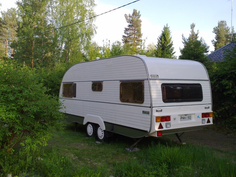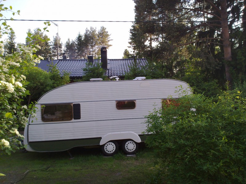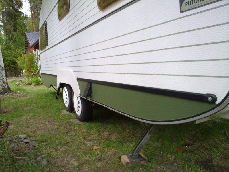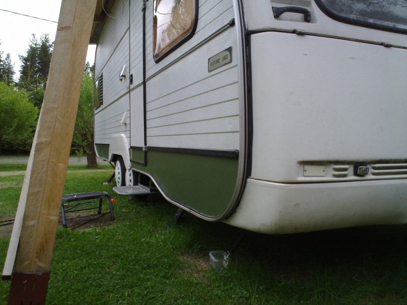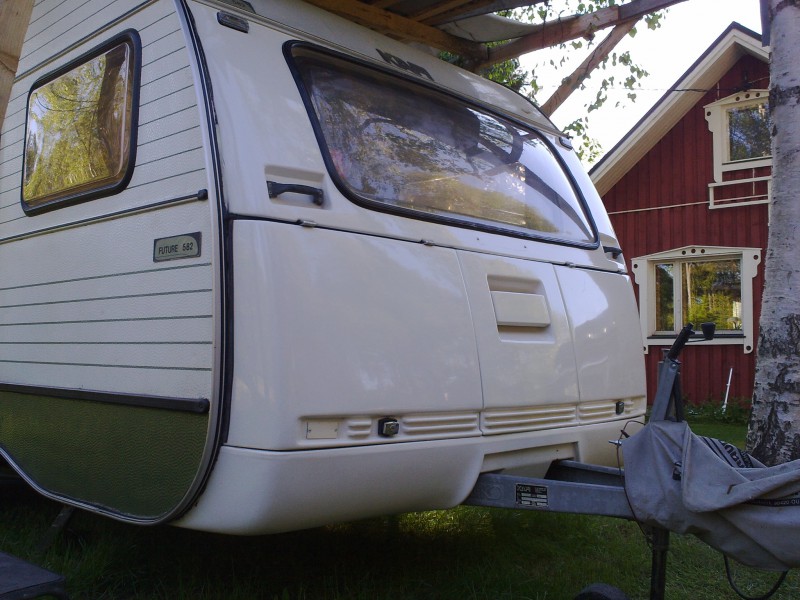 Kiitokset heti alkuunsa kommenteista  Thumb. Rojekti etenee, Future on ajettu ulos katoksestaan. Pesua on suoritettu ja jatkuu vielä sen jälkeen vahaa pintaan ynm. hipistelyä :P Ei tuo kovin pahalta näytä 25 vuotiaaksi vaunuksi, ainakaan omasta mielestäni... mutta makuja on montaa sorttia  :D. Valmis ei vielä ole reissuun, wc vaiheessa..