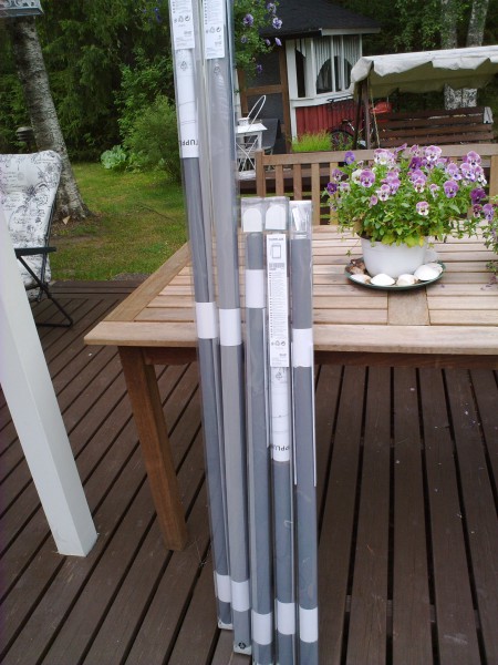 . Tähämpä en osaa antaa vastausta, ainakaan vielä. Ihan valkoisia nuo ei varmaankaan ole ollut alkujaankaan. Jos ihan valkoiset vaihtaisi niin aurinkohan ne kellerryttää pikkuhiljaa, mutta olisiko joku muu väritys sitten parempi. Tässä meidän Rojektissa on myös ajanhammas puraissut näihin muoveihin, osa on haljennut ja väri vaihtunut "maitokahvin"-väriseksi. Toistaiseksi en niitä rupia vaihtamaan, puhdistus saa riittää niille nyt tässä vaiheessa.....