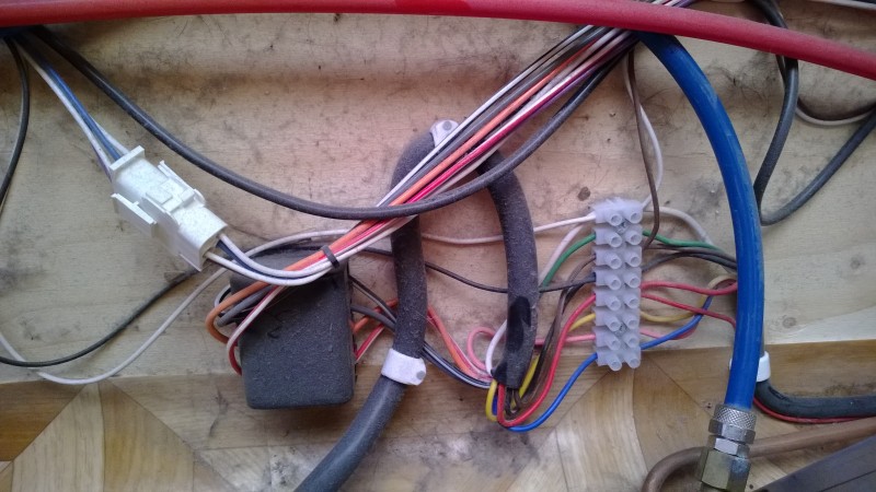 Tuossahan on 13-napainen kaapeli ja lataus, jatkuvavirta ja niiden kaksi maajohtoa näyttäs menevän tuohon mustaan boksiin. Takavaloille menee 8-piuhaa, joten siellä kaikki lienee kunnossa.