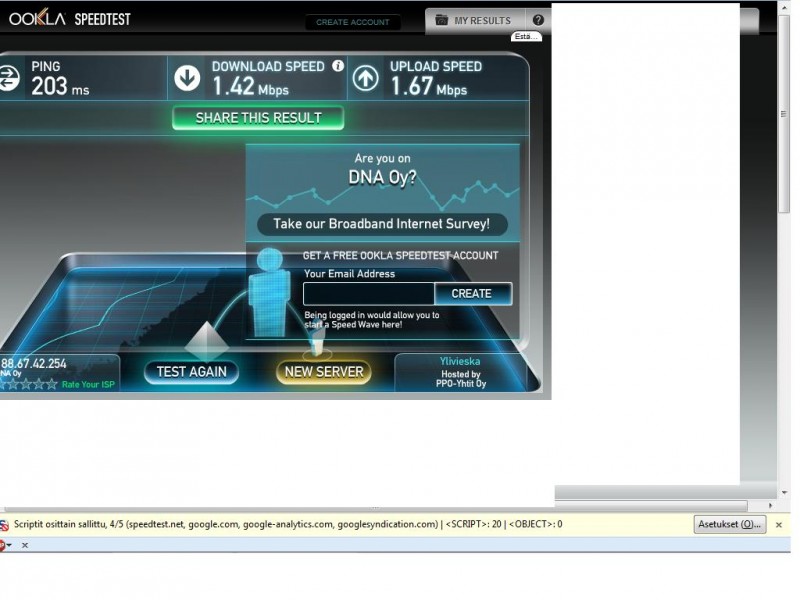..nyt jatketaan tällä nykyisellä 3g mokkulalla, vaikka himpun verran 1megan yli taitaa justiinsa mennä nopeus, pääsee tänne ainakin nippa nappa suuta soittamaan...