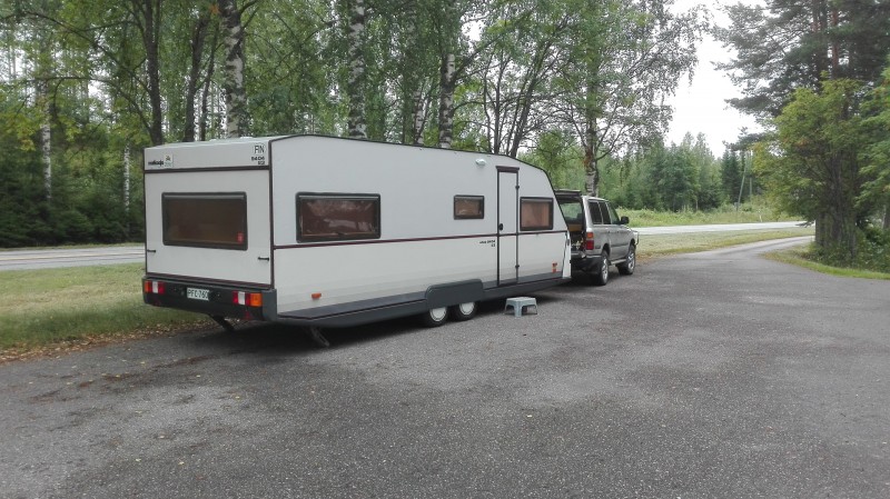 Joskus vahvasti viime vuosituhannella aloiteltiin tämä matkailu homma tuommoisella kalustolla.Ei ollu etenemis vaikeuksia varsinkin kun laittoi etusiin lukot päälle.Voi noita aikoja. Thumb, ;D