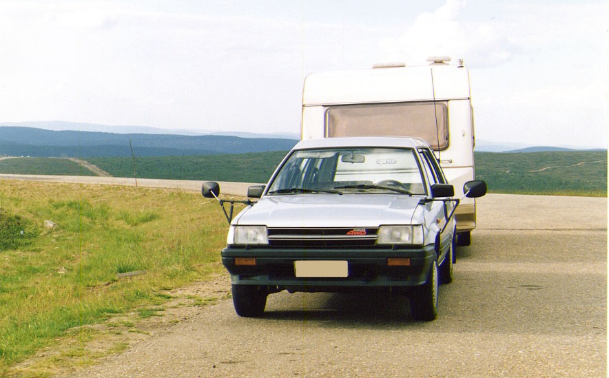 Peruspose setistä jolla laji varsinaisesti alkoi. Tästä tunnustan heti että vaunun rekisteriotteessa EI ole ollut oma nimeni vaan urospuolisen vanhempani. Silti tuota LMC:tä tuli sellaiset 40tkm vedettyä. Ja hengissä se LMC on edelleen (luultavasti myös Pösö vielä juoksee jossain). Ennen tuota Pösöä tuli pari kesää vedettyä samaa vaunua Olds:in CC:llä mutta Pösö vei paikan tuosta nokalta Oldsin siirtyessä silloin harrastekäyttöön. Siitä setistä ei juuri kuvia ole kuin paperilla.