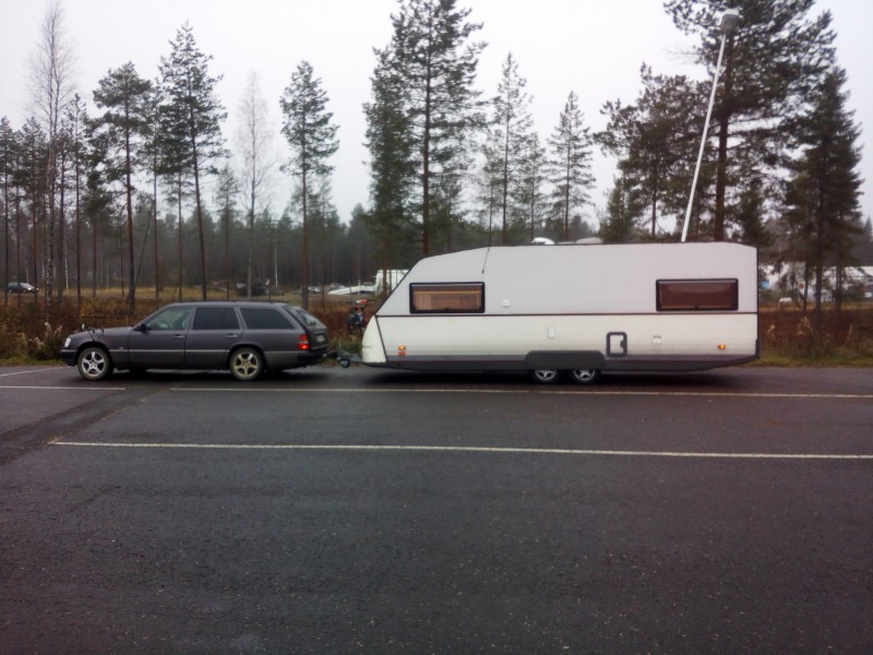 Tietenkin ajotottumuksesta kiinni, eli pitää opetella ajamaan ihan ilman vakkaria kun on vaunu perässä  ;D