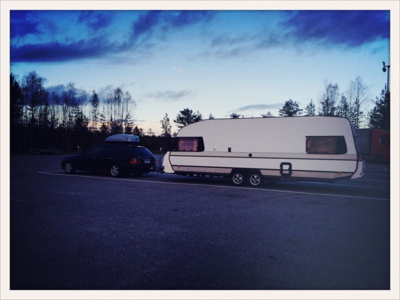 Tietenkin ajotottumuksesta kiinni, eli pitää opetella ajamaan ihan ilman vakkaria kun on vaunu perässä  ;D