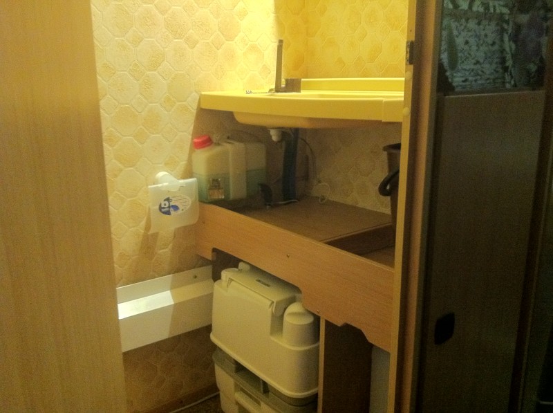 Riittää, että se kemssa-aine pullo löytyy jostain vaunun sisätiloista. Varmasti haisee, jos nenä ei ole aivan tukossa.
