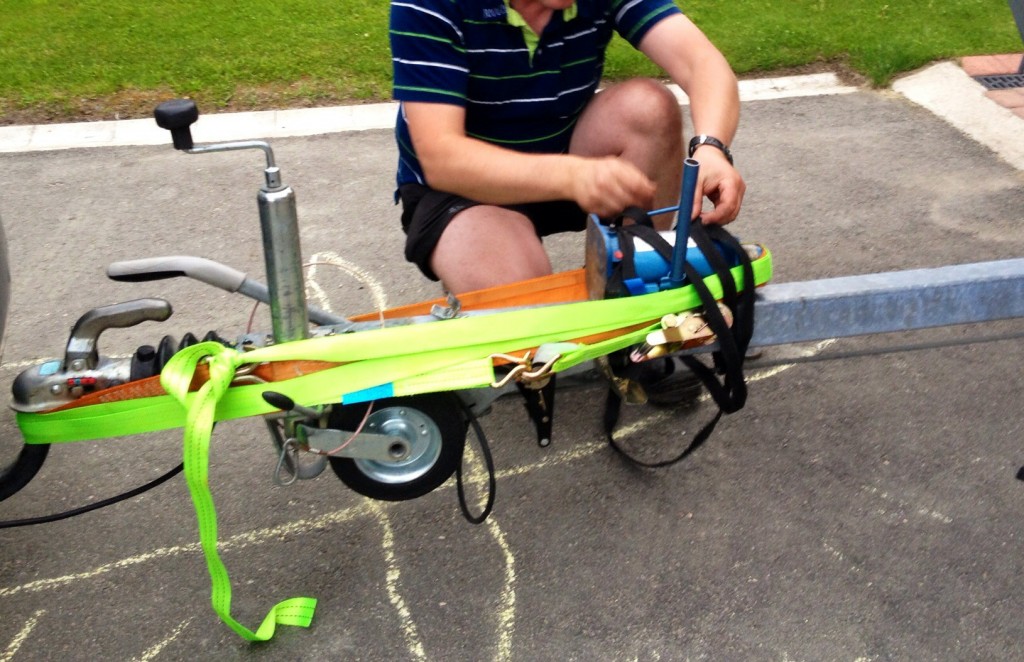 Tossa illalla nuorimmaisen kanssa testailtiin tolla "pumppuliinalla" ja sehän meni sisälle ja autolla ulos. Tämän hetken tulos, jarrut säädetty liian piukalle, liikerata on n.2 cm ja jarrut lukossa. Täytyy ottaa toi jarru vipu irti ja rasvailla ilman sitä.