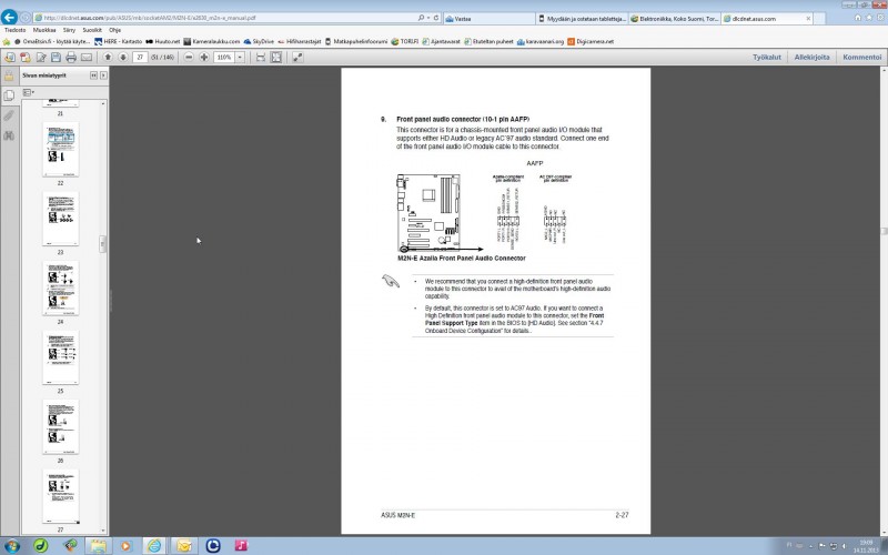 Kyse on pöytäkoneesta, takaliitin toimii OK, mutta etuliitin on mykkä (paitsi toisella käyttiksellä). Emona M2N-E.