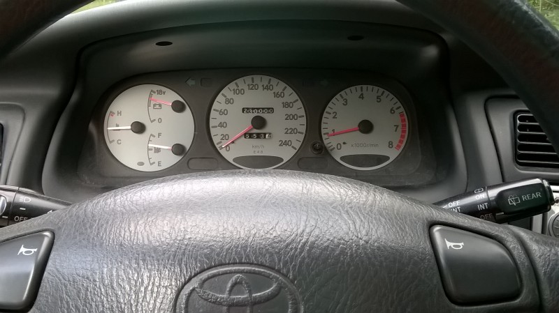 Mittarissa ite ajamat kilsat, vaihdoin mailimittarin Kanadan-mallin kilsamittariks auton ostettuani. Todellinen ajomäärä noin tuplat. |