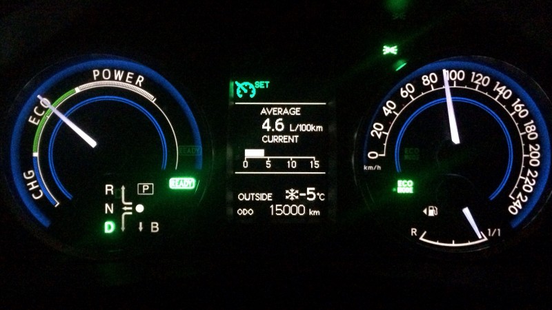 Alla 400km lähes pelkkää matka-ajoa ja tankkaus täyteen tuon 118km aiemmin - luonnollisesti nyt tyhjällä koukulla. Pitää laittaa kesällä vastaava kuva siitä mitä ennustaa täydelle tankille vaunun kanssa ;D