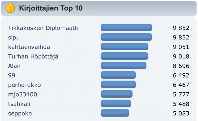 Tuolla listalla oli aiemmin joku orgilainen, joka ei ollut kirjoittanut montaakaan viestiä. Syy epäilemättä sama.