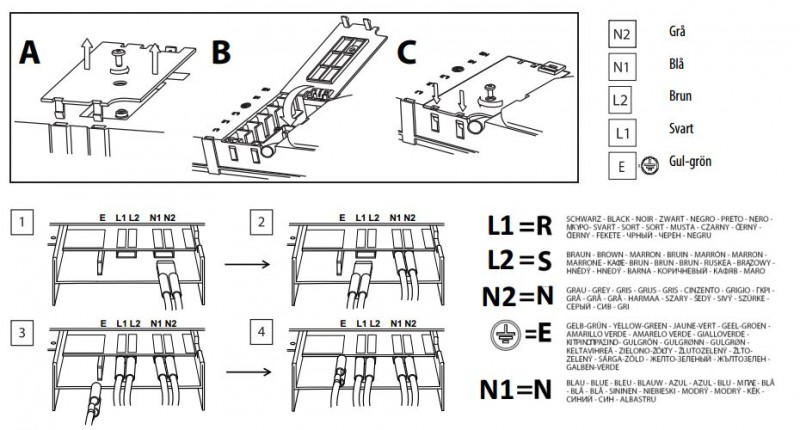 Näin ajattelin itsekkin että kaksi vaihetta liedelle ja kolmas uunia varten. Oliko N1 ja N2 samassa paketissa vai erillään toisistaan, oisko N1 L1:n nolla ja L2:n toinenpää sitten N2