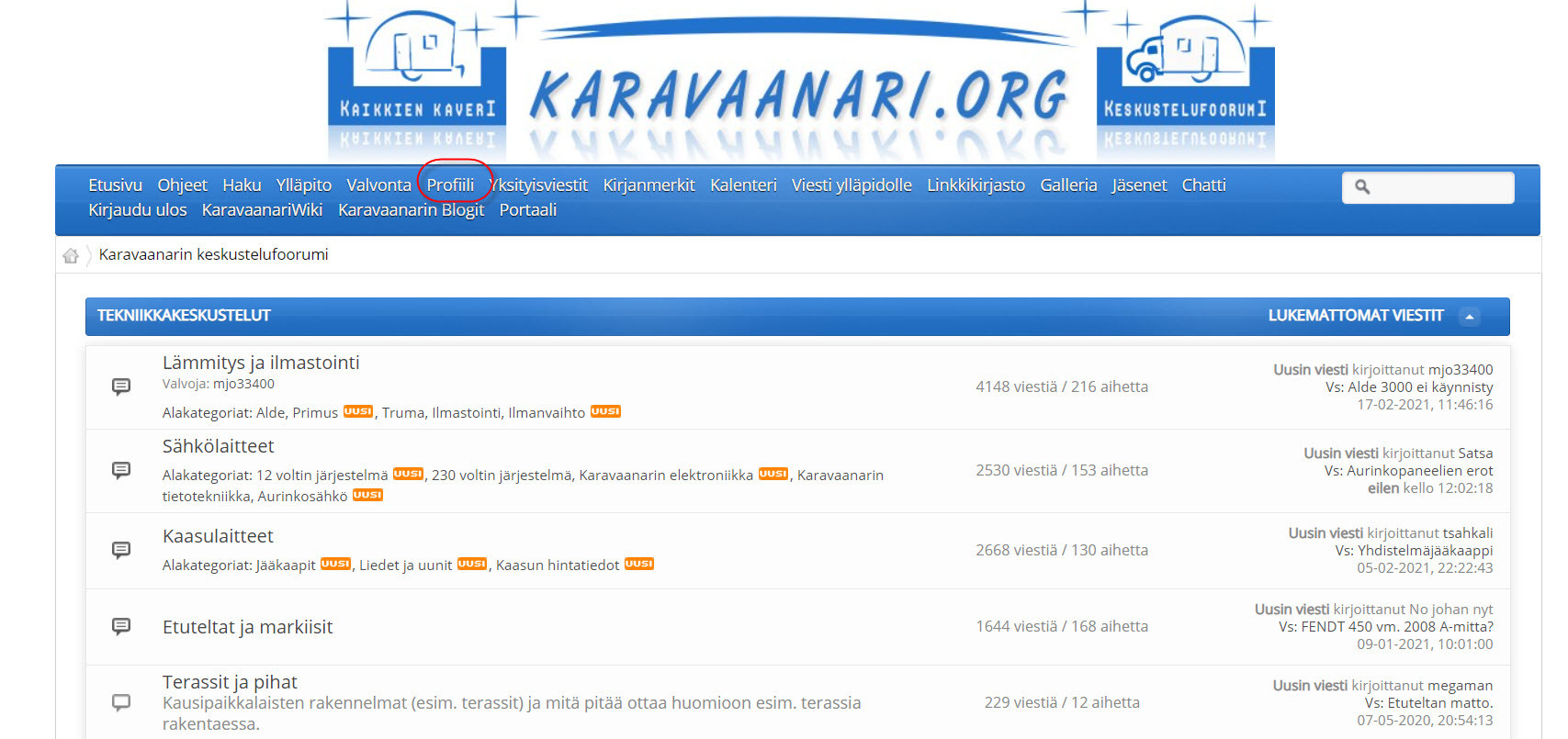 Muokkaa profiilia/Keskustelualueen asetukset/Nykyinen teema: (muuta)