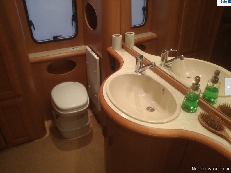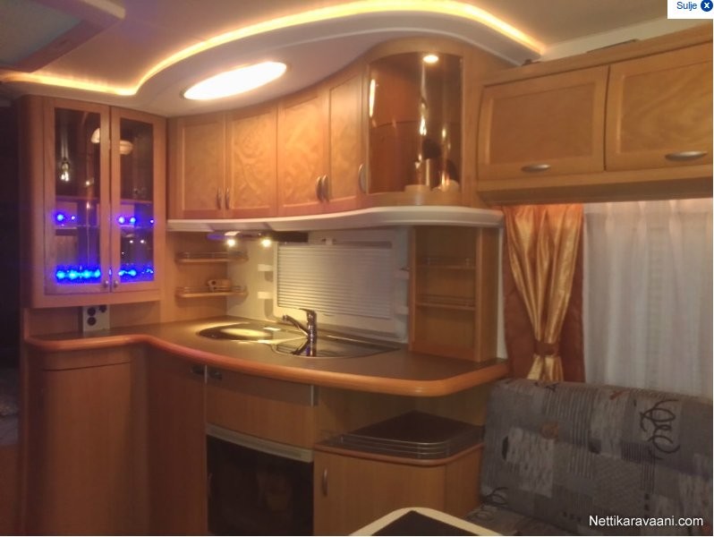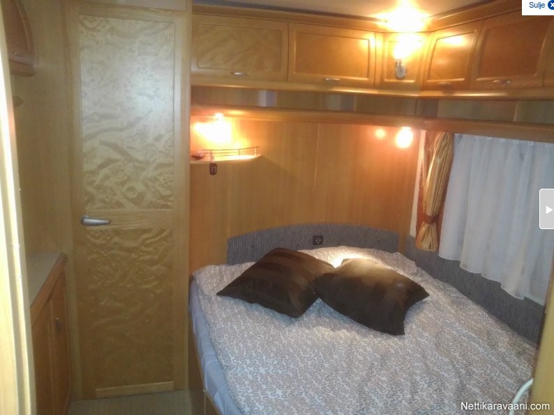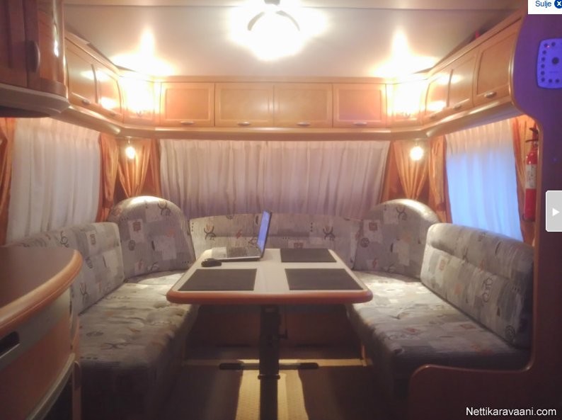 Tosin keittiön kaapisto ei ole yhtä käytännöllinen kuin pefletissä, mutta kyllä tälläkin tulee toimeen. Yllätys oli että kuinka vakaa tämä on kun liikkuu sisällä kun vaunu on vetokoukussa kiinni, eli ilman tassuja yhtä vakaa kuin pefletti takatassujen kanssa.