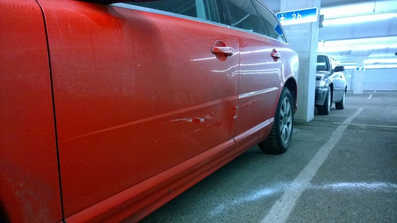 Papparainen nykäs kaupan parkkihallissa kylkeen. Olin just menossa sisään parkkihallista niin johan rutisi. Ei muuta kuin Volle pajalle. Vuoden sisään jo toinen kerta kun auto on läjässä, kummallakaan kertaa ei onneksi ole ollut oma syy. Mitähän seuraavaksi.