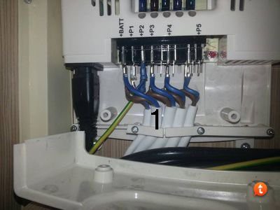 Seuraa kuvan johtoa johon on laiettu 1:nen, mihin se menee koska kuvan mukaan akku on kytketty tai ainakin valmius. Kytkentäperiaate alla.