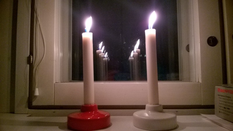 Viis siitä, että kynttilänjalassa on punaista. Olennaista on kaksi kynttilää. Harva mahtaa tietää niiden merkityksen. Äidinäitini kotona niitä pidettiin ikkunalla noin sata vuotta sitten, jotta Saksaan matkaavat tulevat jääkärit löytäisivät turvapaikkaan yöksi. Etappitaloksi sellaista kutsuttiin.