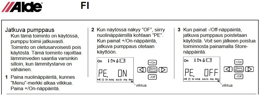 « : 16.10.2018 kello on 07:27 »Jos järjestelmä olisi suunniteltu jatkuvakiertoiseksi, olisi pumppu mitoitettu kestämään. Ja oma aldeni on vuodelta - 04, compact 3000. 230v pumpusta mainitaan, että sitä voi käyttää tarvittaessa jatkuvasti.