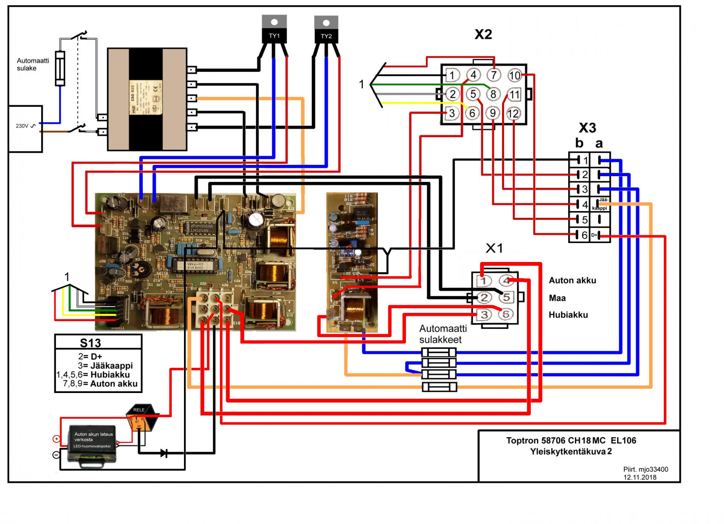 Kirjoittanut: mjo33400« : 8.10.2025 kello on 19:18 »Muutama kuva Ettei nyt sattuisi olemaan tämä piirilevy? Tässä vielä kytkentäkuva ja johdotus. ![]() ![]() ![]() ![]() Kirjoittanut: mjo33400« : 8.10.2025 kello on 19:02 »mitenkä on joko vika löytyi , minun kaverilla on sellainen vika ei lataa asunto osan akkua ,olen tutkinut D+tulee kun rele vetää mutta ei yhdistä tartti akkua ja asunto osan akkua että alkai myös lataamaan as akkua ,akikki komponentit slisivat kunnossa Ettei vika vaan sattuisi olemaan auton puolella isoissa sulakkeissa. Kirjoittanut: viitalar« : 8.10.2025 kello on 08:48 »mitenkä on joko vika löytyi , minun kaverilla on sellainen vika ei lataa asunto osan akkua ,olen tutkinut D+tulee kun rele vetää mutta ei yhdistä tartti akkua ja asunto osan akkua että alkai myös lataamaan as akkua ,akikki komponentit slisivat kunnossa