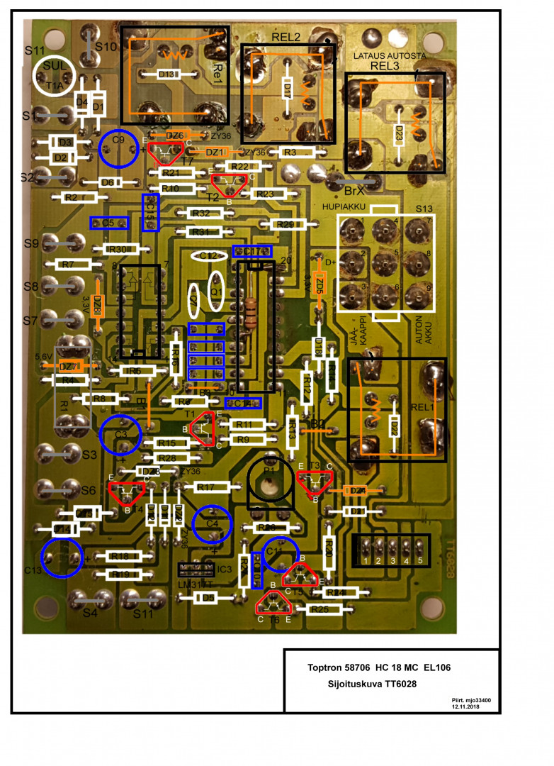 Kirjoittanut: mjo33400« : 29.05.2025 kello on 22:27 »Mitä se jännite on silloin kun pitäisi vetää, siis releen käämillä? Ota sellainen kuva, että piirilevy näkyy kokonaan.