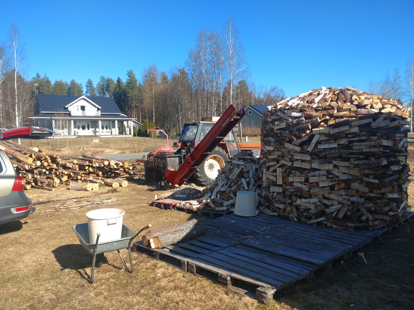 Vuoden verran saa kuivua klapisäkeissä, joita täyttyi 7 x 1,5 m3. Olisiko se sitten reilu 10 heittokuutiota.