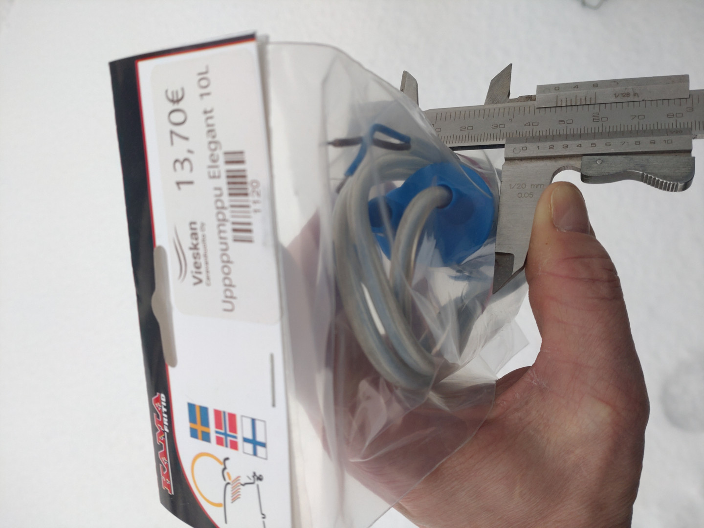 No ei tuossa konkkaan mene, pistin tilaukseen. Seuraavaksi sitten ihmettelyä minkälaisen letkun ja suuttimen laittaisi kiinni. On nyt mökillä varavetenä kun päävesikatkoja tulee ajoittain. Aluksi varmaan vain letku johonkin koukkuun roikkumaan lavuaarin yläpuolelle.